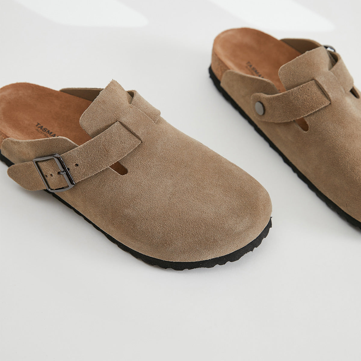 With their clean, rounded silhouette and soft leather upper, these slippers combine a classic feel with modern comfort. The partially exposed heel makes them easy to slip on and off, while the cork-infused rubber sole with EVA insert provides lightweight support and flexibility. Perfect for cozy days indoors or laid-back errands outside.