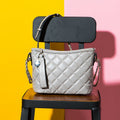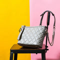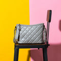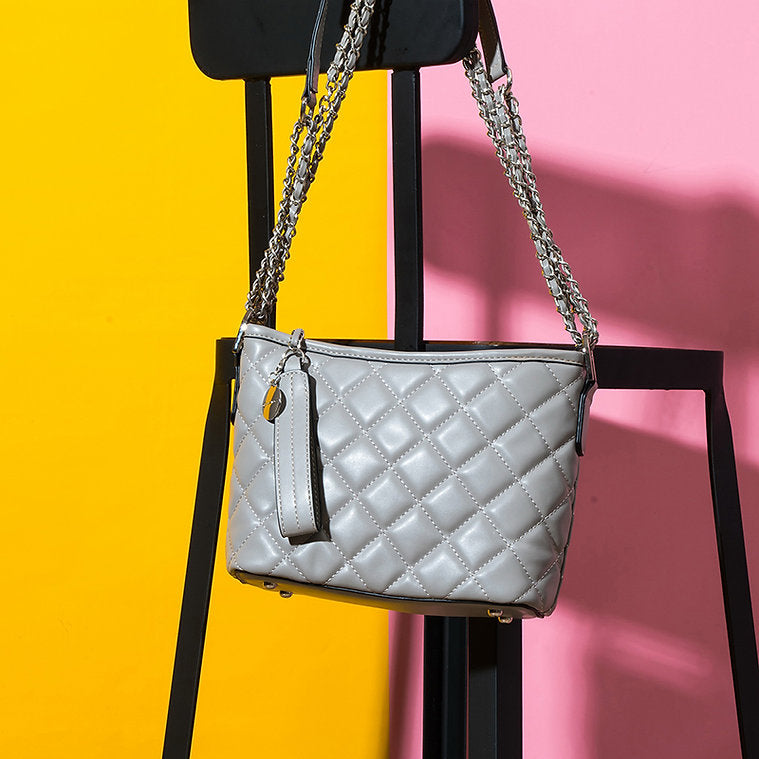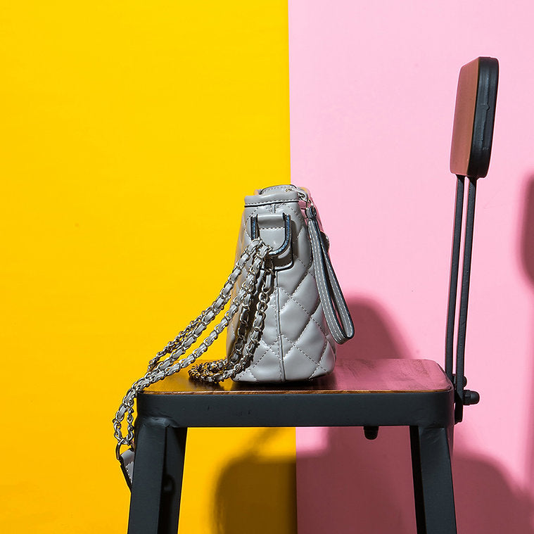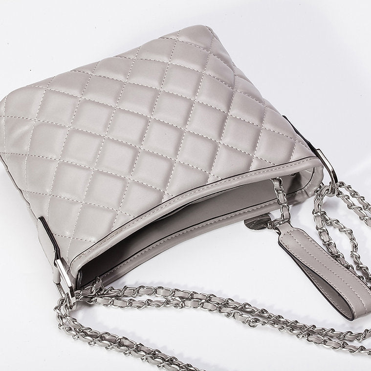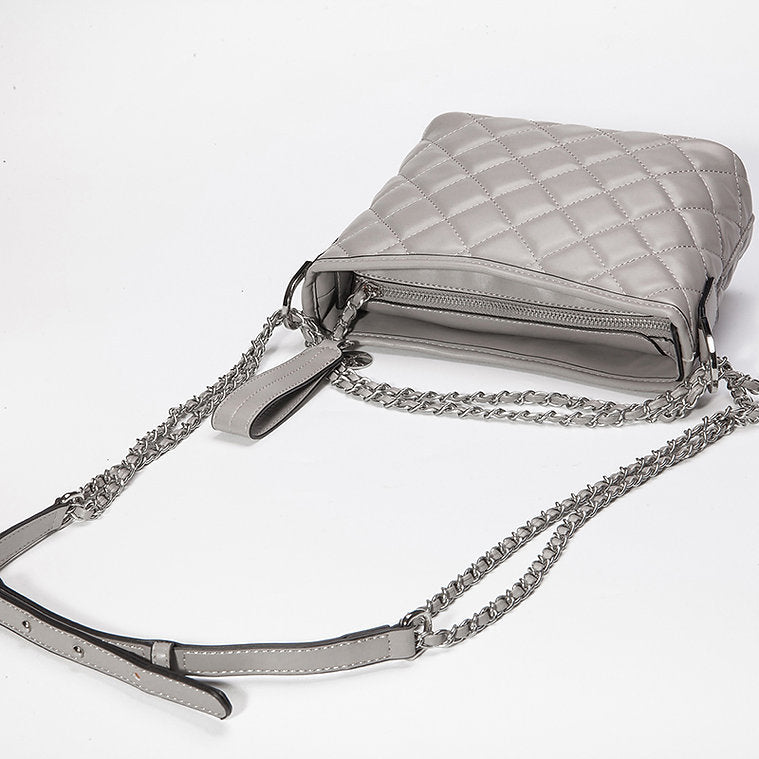 • Quilted diamond pattern with metal chain detail