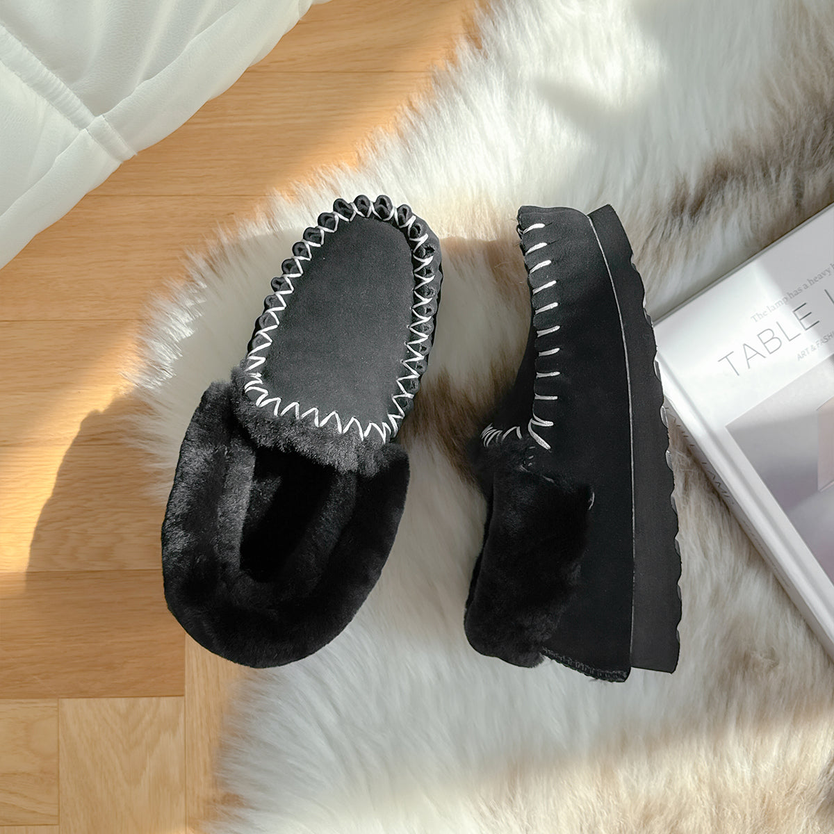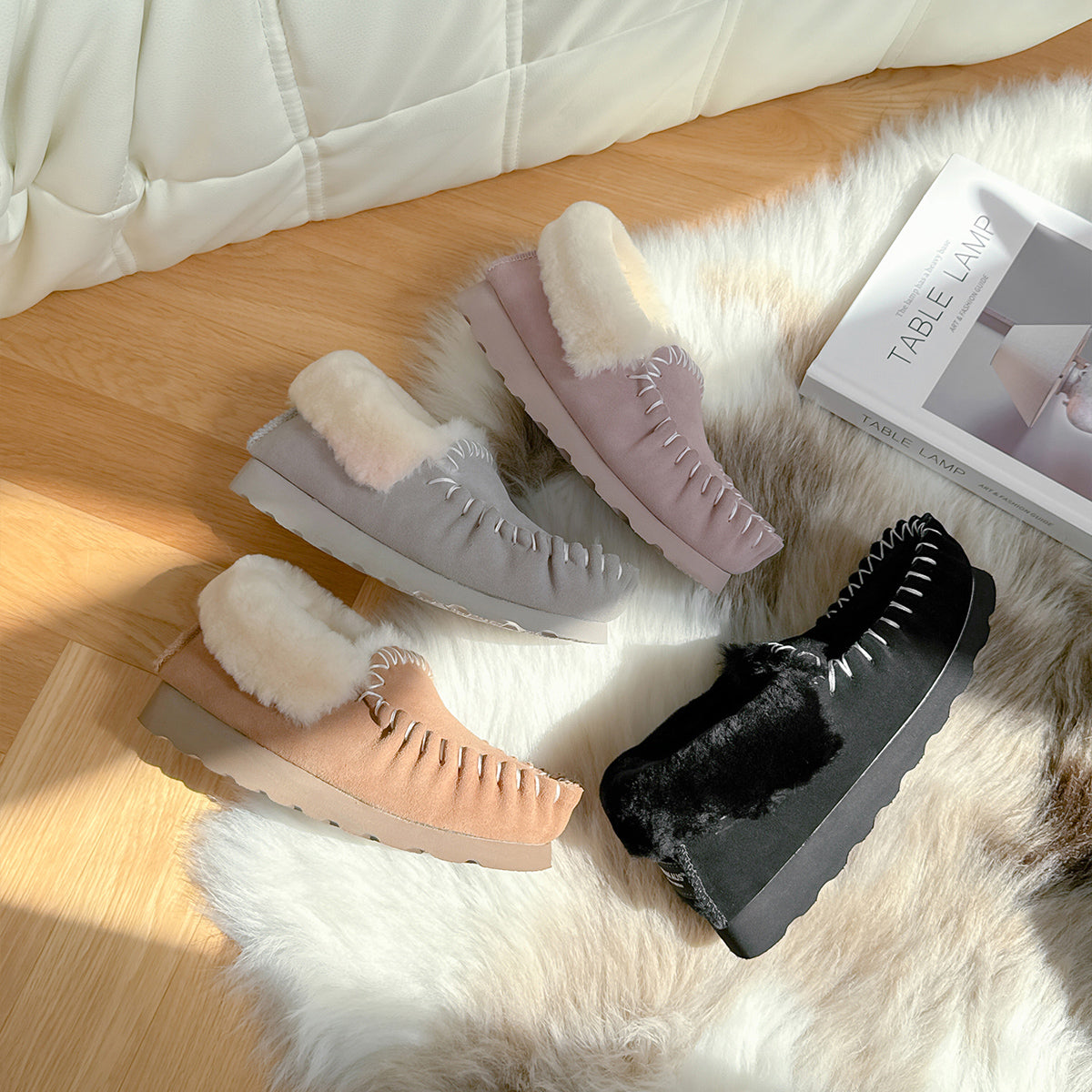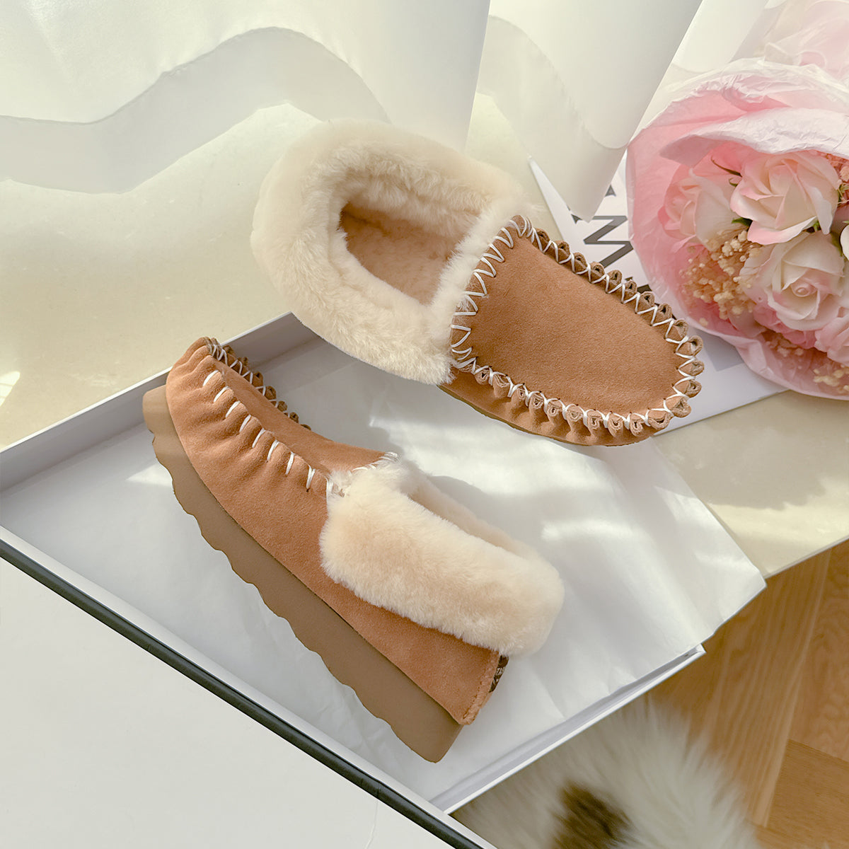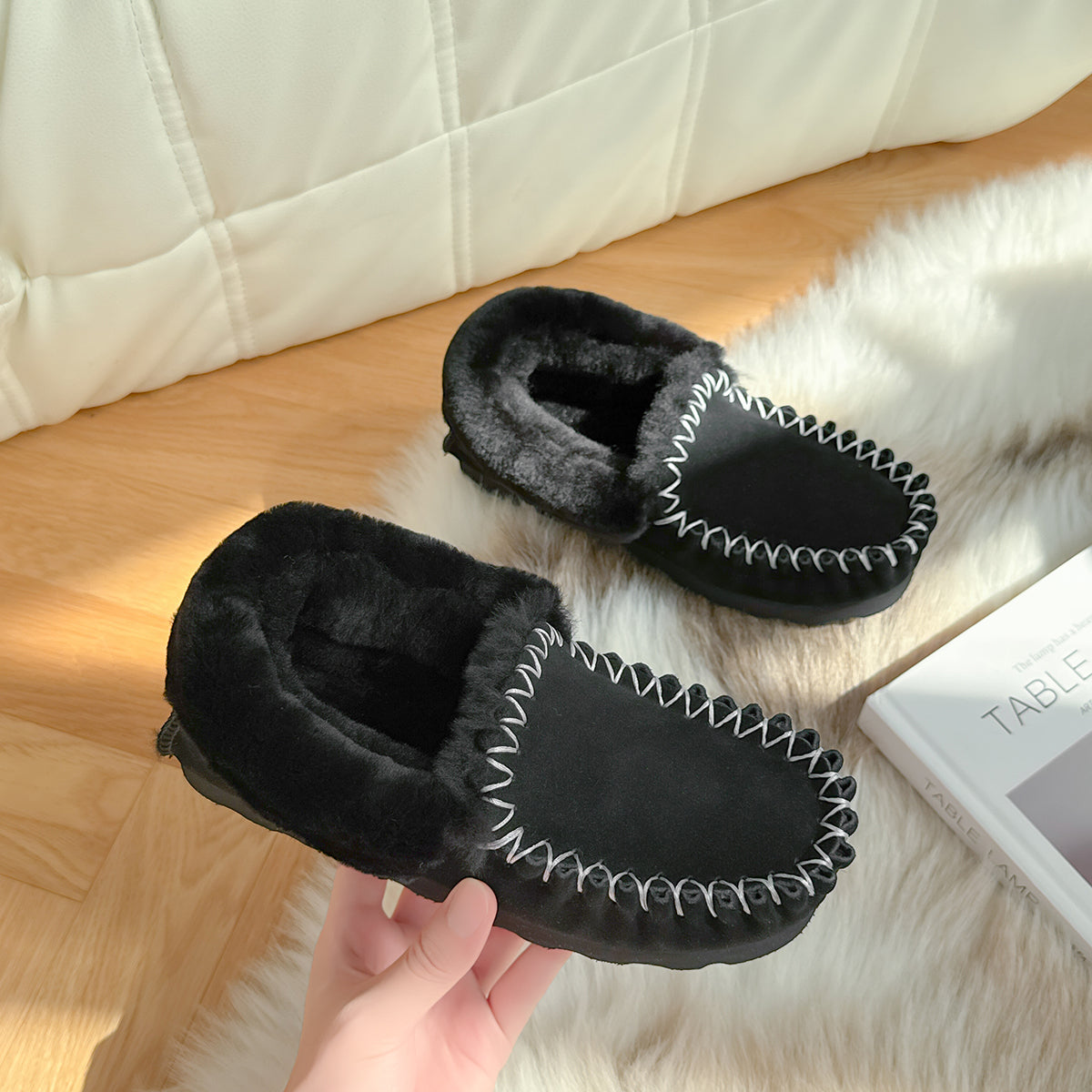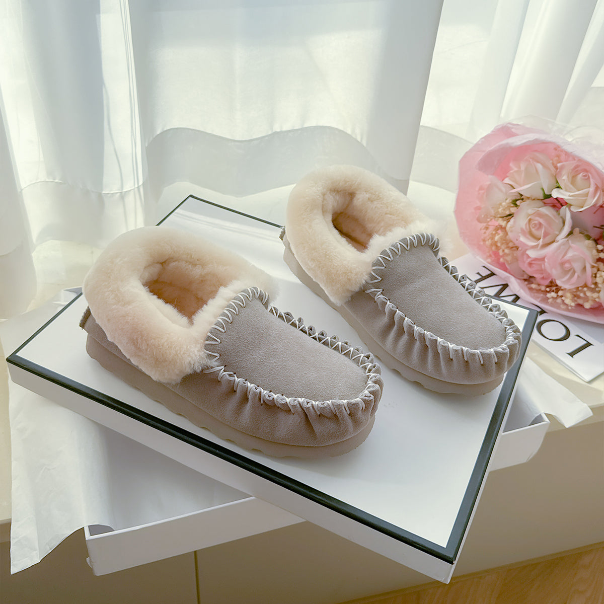 Crafted with care and comfort in mind, these classic suede-finish slip-ons feature detailed hand-stitched seams and a warm lining of Australian Merino wool. Designed for both indoor and outdoor use, the EVA sole offers lightweight support, anti-slip grip, and water resistance — making them a versatile staple for everyday comfort.