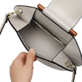 The TASMAN Shell Bag is a uniquely designed handbag inspired by the elegant silhouette of a seashell. With its structured shape, curved profile, and contrasting handle, this chic accessory is a stylish statement piece for any outfit. The PU leather exterior offers durability and a sleek, polished look, while the woven fabric lining ensures your essentials are protected and neatly organized.