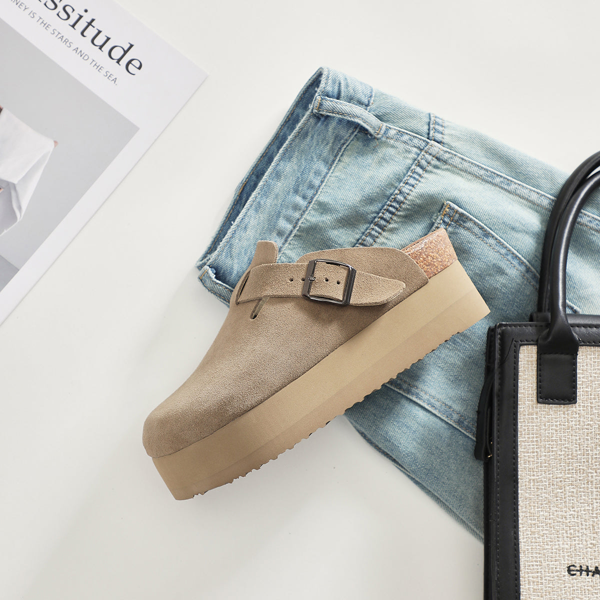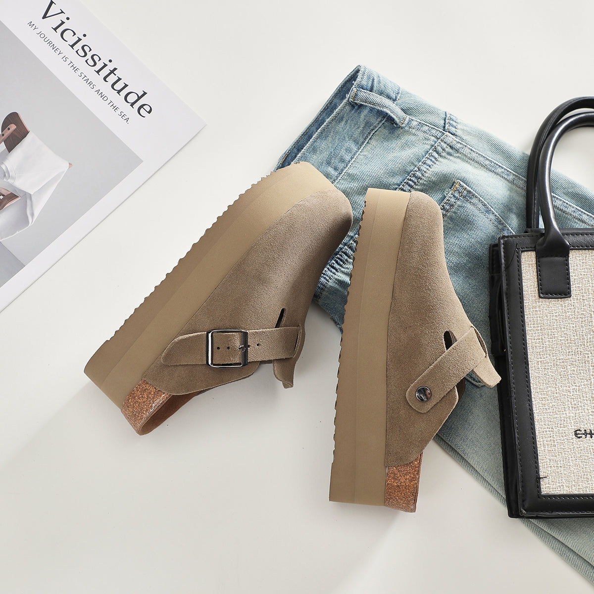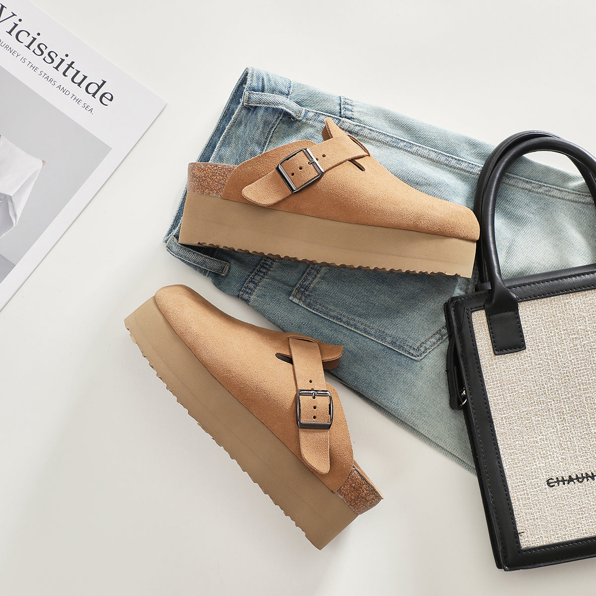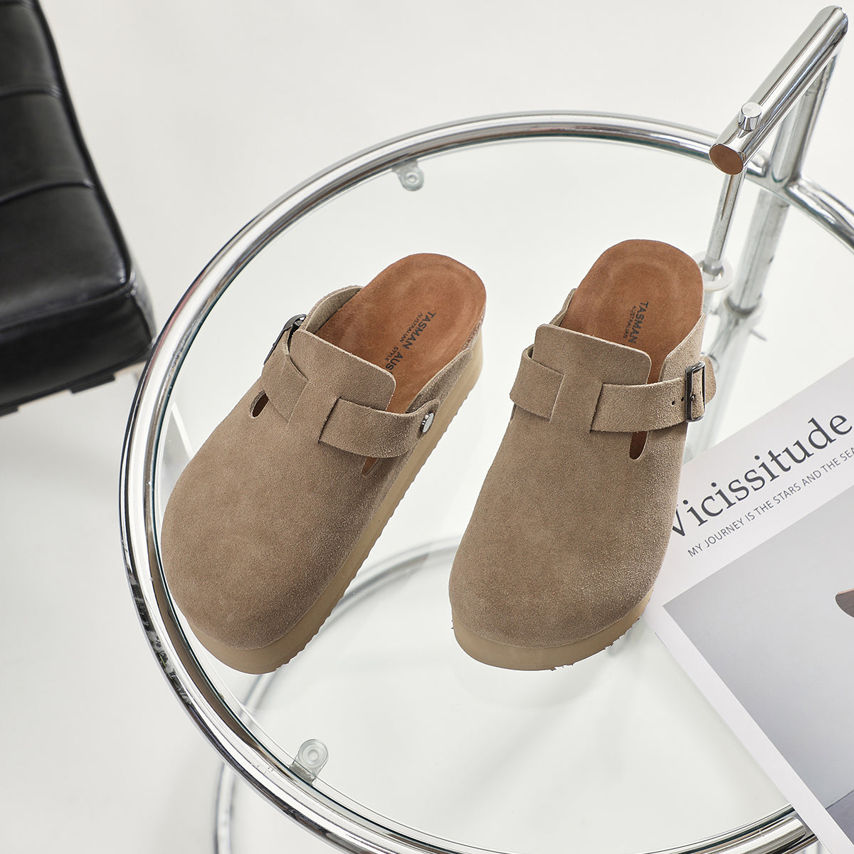 Step into comfort and style with our platform sandals. Crafted from textured suede, these sandals feature a chic bohemian design with a thick sole for added height and an elongated silhouette. The moisture-wicking material and adjustable upper ensure lasting comfort, making them perfect for all-day wear.