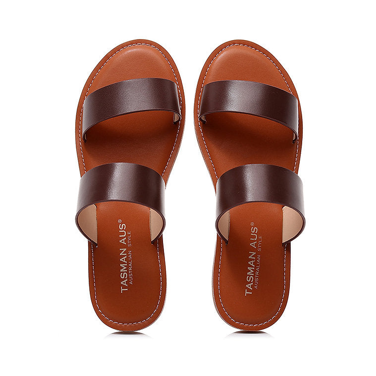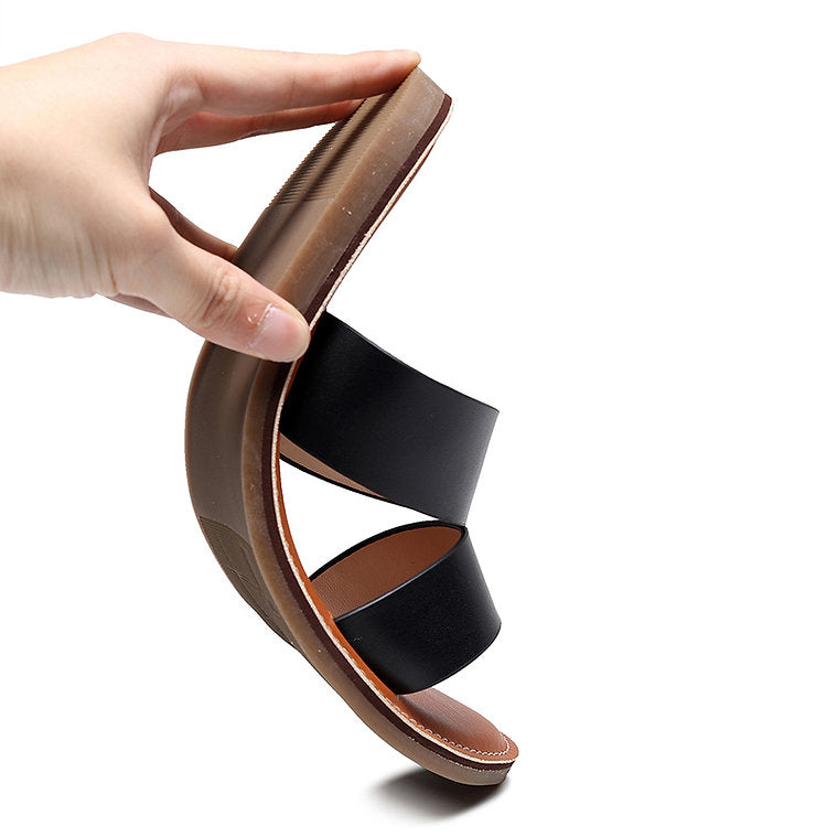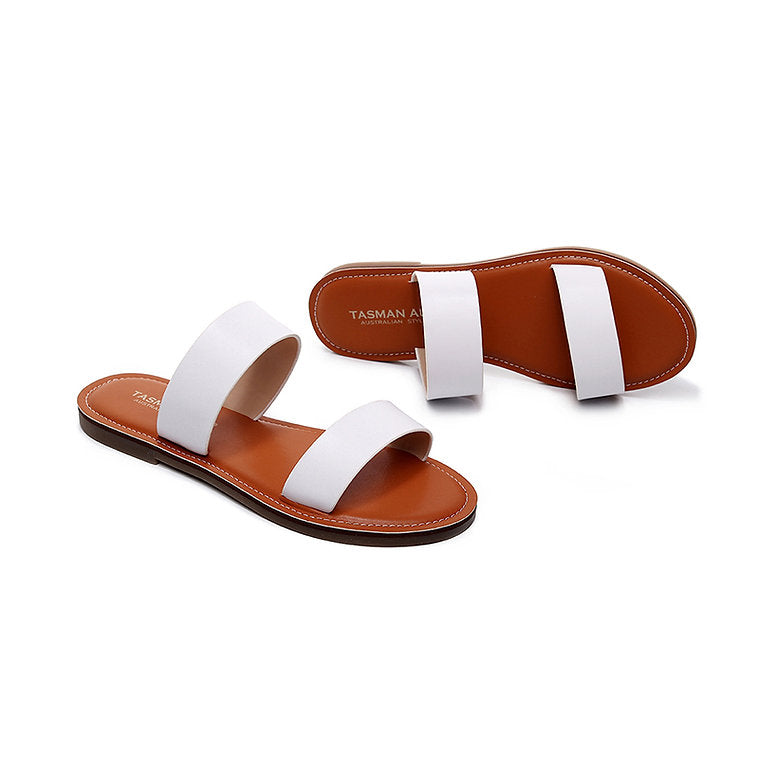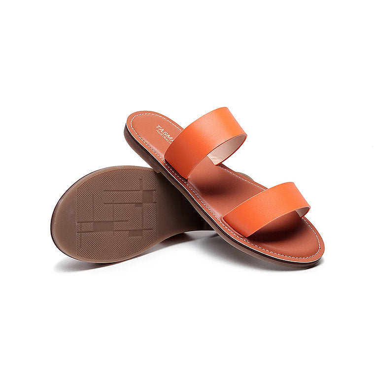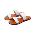 Enjoy effortless style and comfort all weekend long with our women's leather slides. Crafted with soft double straps and a simple slip-on design, this pair is a must-have essential for the summer season. Perfect for sunny strolls, beach days, or laid-back weekends.