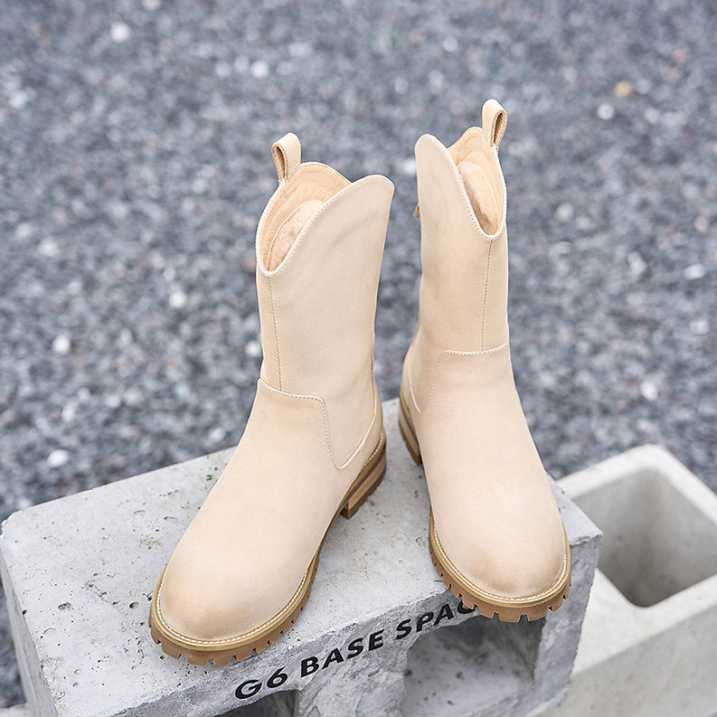 Uniquely textured and stylish, these boots are perfect for autumn and winter wear. Crafted from high-quality cowhide leather, the leg-lengthening silhouette adds a touch of elegance to your seasonal wardrobe while keeping you warm and comfortable.